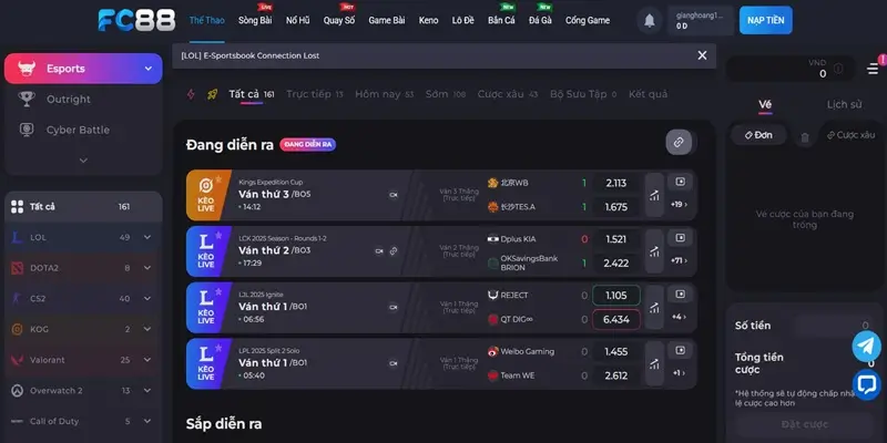 Đa dạng nhà cung cấp Esports FC88 danh tiếng quốc tế